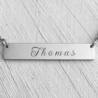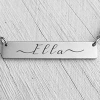 This gorgeous sterling silver bar necklace is very popular in our personalised jewellery range. The necklace is light so makes the perfect item of jewellery for every day wear. It also makes the perfect gift for your mother, bridesmaids or special lady in your life. The bar necklace works well as a name necklace displaying your name or a message on a beautiful piece of jewellery. The necklace includes a feminine 45cm sterling silver chain and can be customised with up to 12 characters with a variety of fonts to choose from.