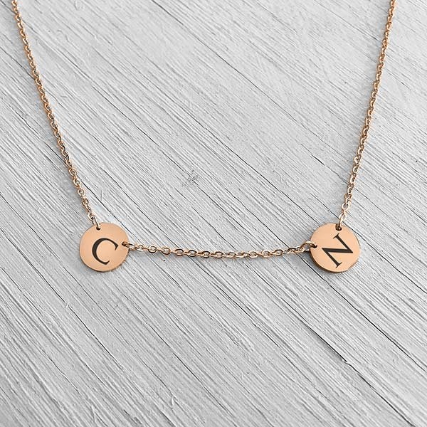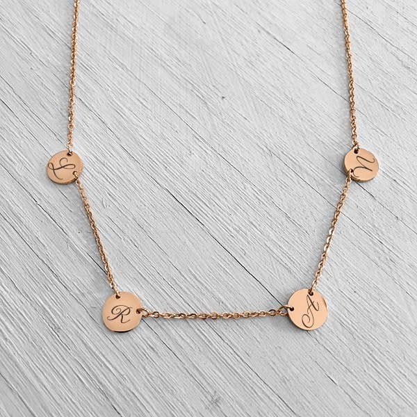 Any special woman in your life, whether she be a mother, grandmother, partner, daughter or friend deserves a special personalised necklace. This custom rose gold necklace is linked with rose gold chain in between each pendant and makes the perfect gift for her. This simple yet attractive rose gold charm necklace makes the perfect gift for Mother’s Day, birthdays, anniversaries or to celebrate a new Mum. The circular shaped rose gold charm can easily be personalised with up to one initial of a loved one. There are several options available to further personalise this stunning necklace, including the addition of up to 4 pendants. It includes a gold-filled chain from 45 centimetres for one pendant through to 55 centimetres for 4 pendants.