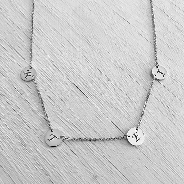 The special mother, grandmother, or lady in your life deserves a special personalised necklace. This custom sterling silver necklace makes the perfect gift for her! This simple yet attractive sterling silver charm necklace is linked with sterling silver chain in between each pendant. It makes the perfect gift for Mother’s Day, birthdays, anniversaries or to celebrate a new mother. The circular shaped sterling silver charm can easily be personalised with the initial of a loved one. There are several options available to further personalise this unique necklace, including the use of 1, 2, 3 or 4 pendants. It includes a sterling silver chain from 45 centimetres for one pendant through to 55 centimetres for 4 pendants.